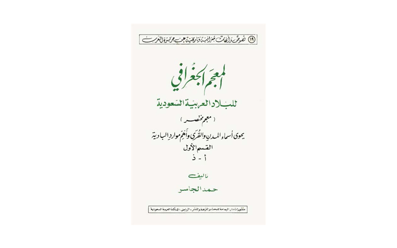 - معجم المنطقة الشرقية (البحرين قديمًا)، لمؤلفه حمد الجاسر، ويتكون من أربعة أجزاء، وعدد صفحاته 1376 صفحة، وقد احتوى على مجموعة من أسماء الأماكن الجغرافية الموجودة في المنطقة الشرقية، والمحافظات التابعة لها.